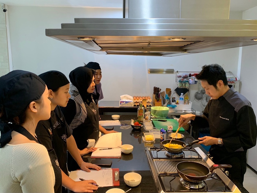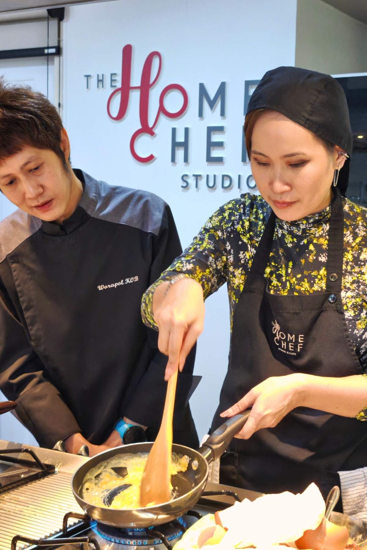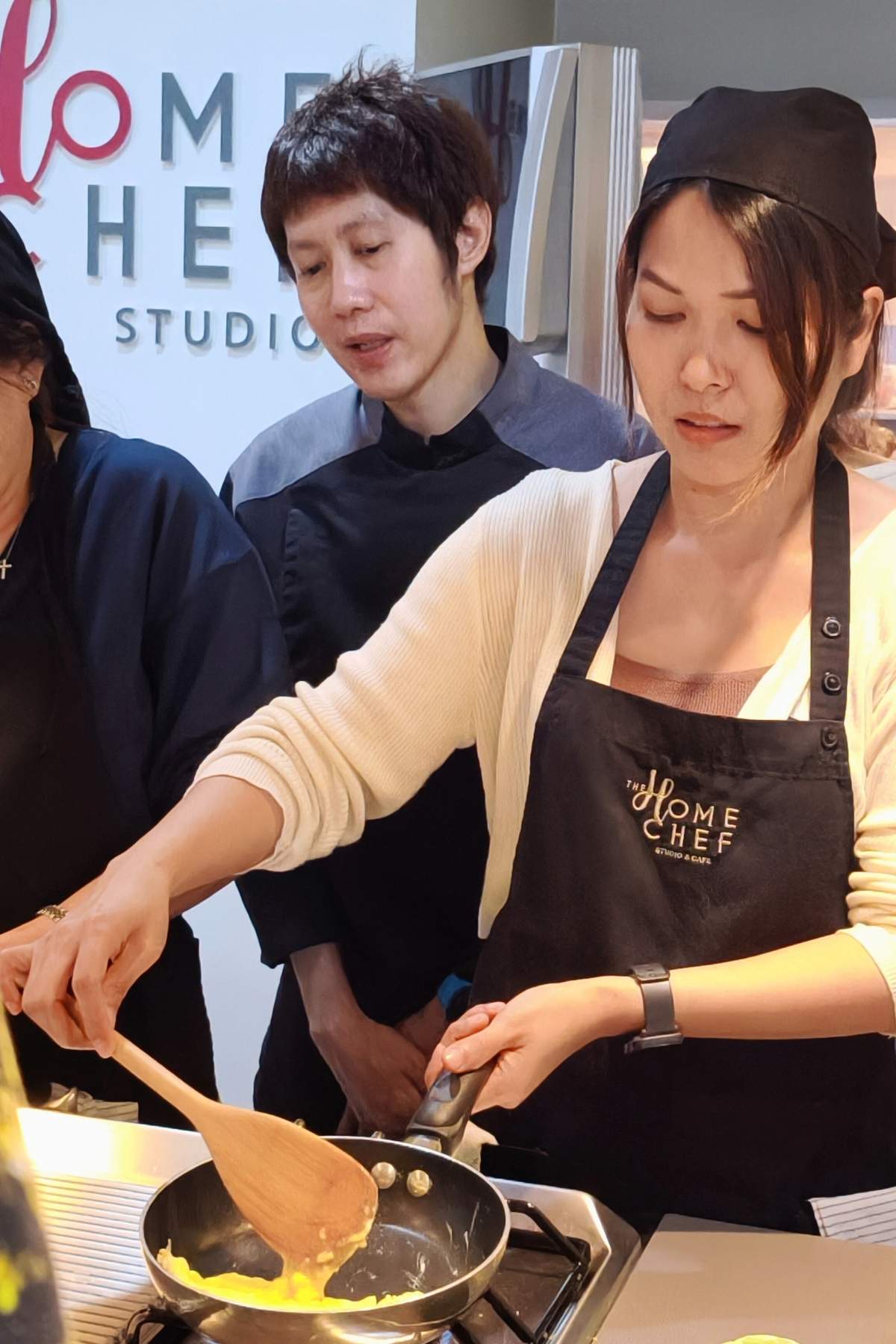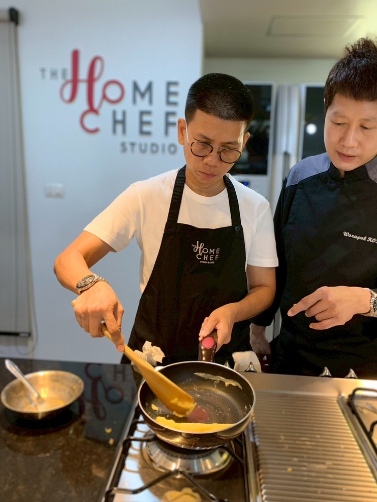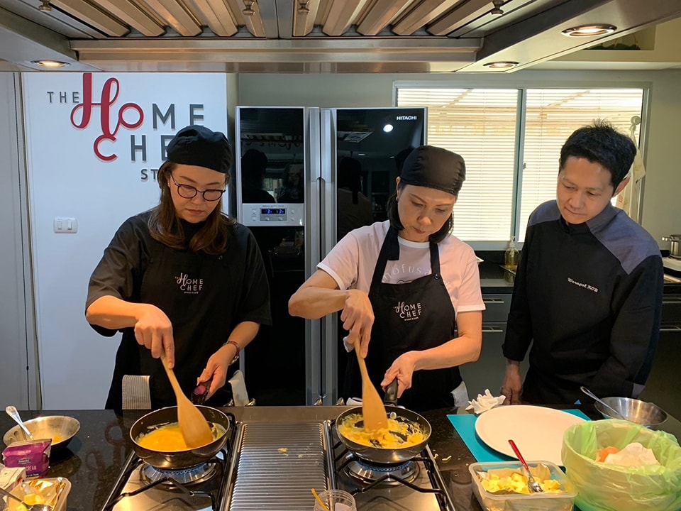 - Scrambled Eggs : เรียนรู้ การตีไข่ การใช้ไฟ กระทะแบบใด ถึงจะได้ texture ที่ต้องการ ได้ทำ Scrambled Eggs ทั้งแบบปกติ และใส่เครื่องตามชอบ : นม ครีม ชีส และผักต่างๆ