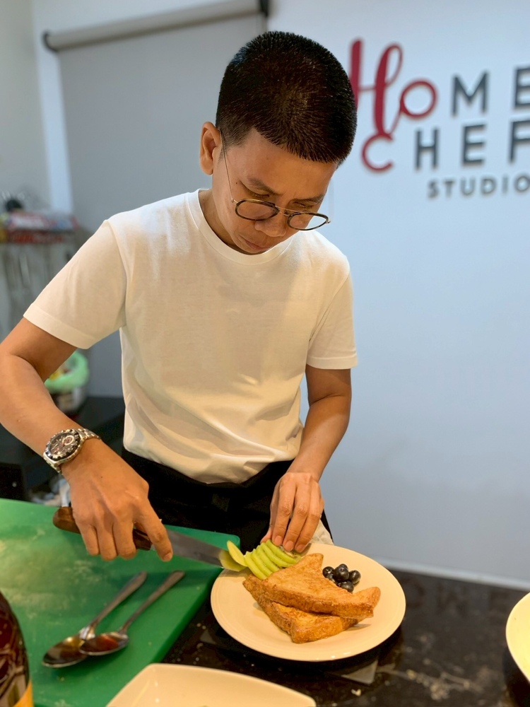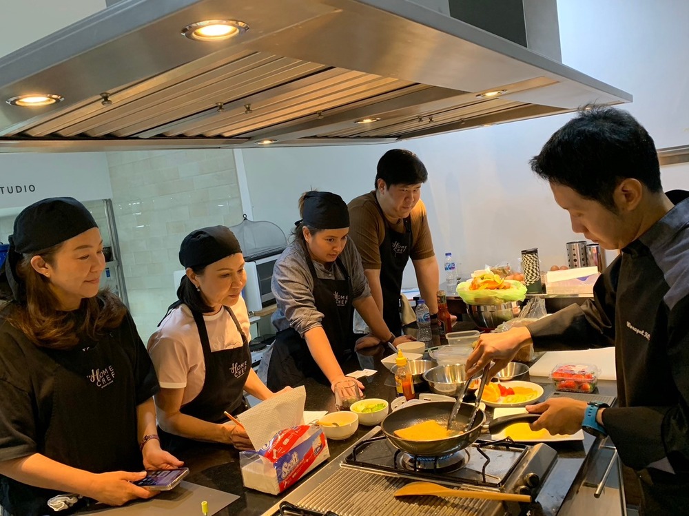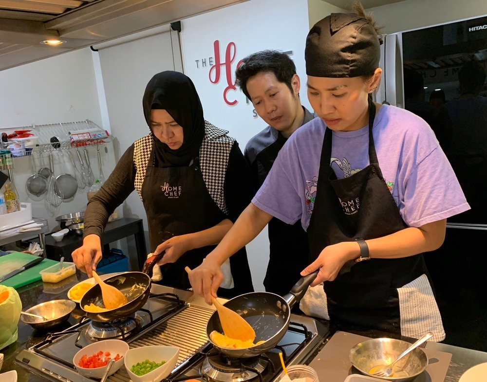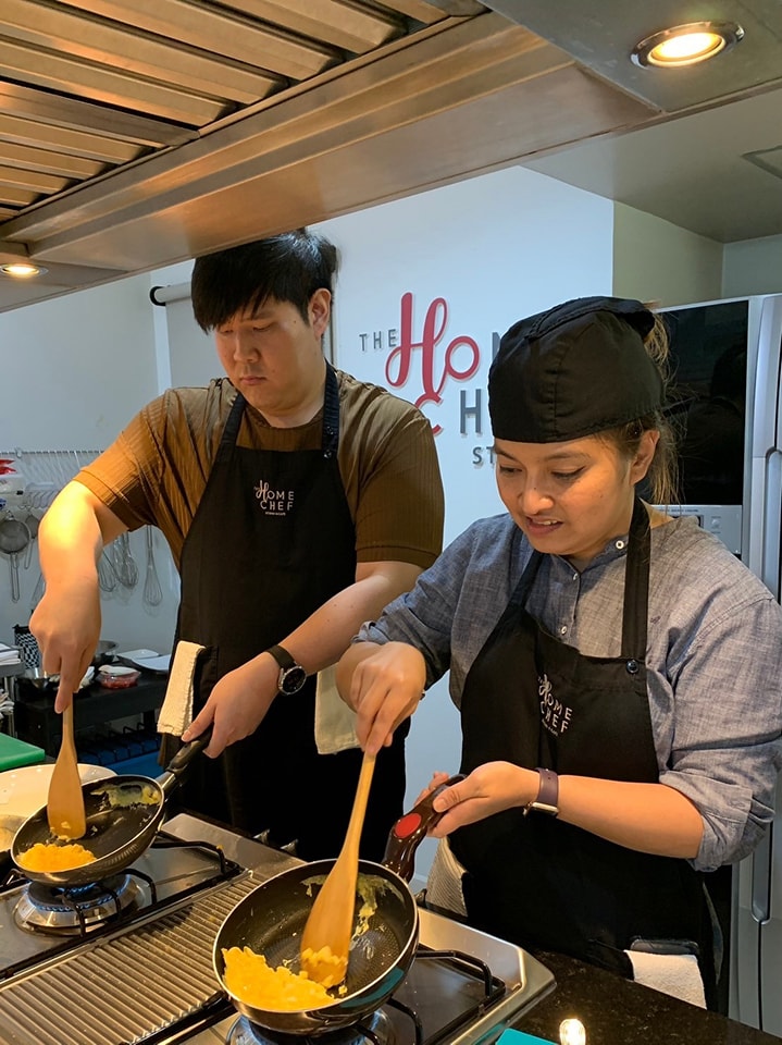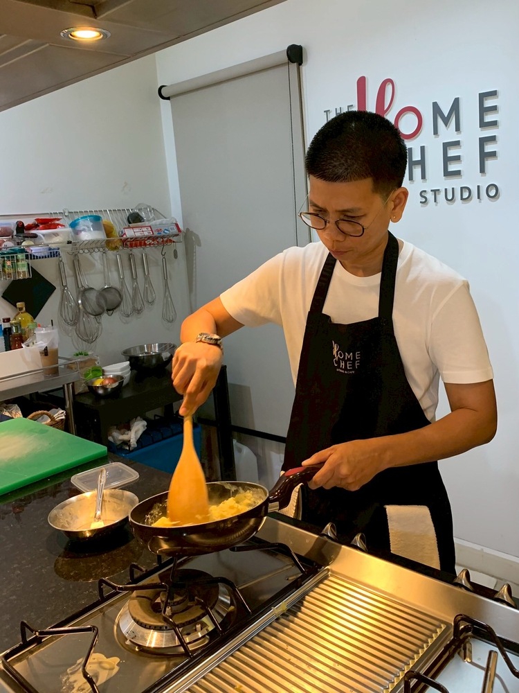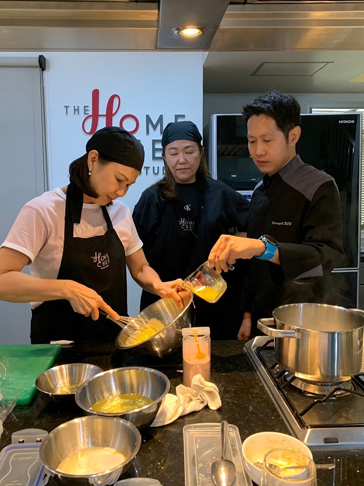 - Scrambled Eggs : เรียนรู้ การตีไข่ การใช้ไฟ กระทะแบบใด ถึงจะได้ texture ที่ต้องการ ได้ทำ Scrambled Eggs ทั้งแบบปกติ และใส่เครื่องตามชอบ : นม ครีม ชีส และผักต่างๆ