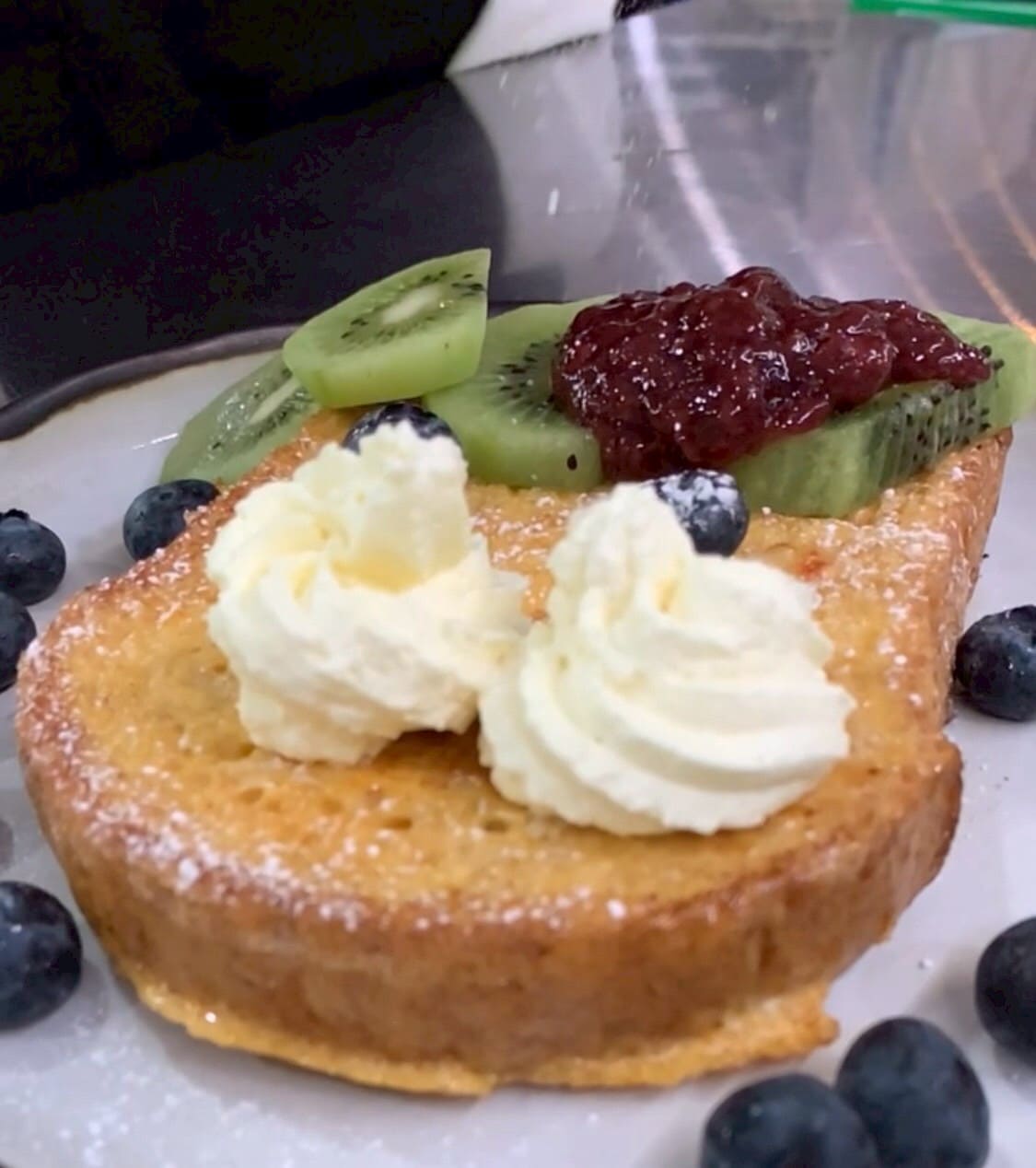 - Sweet French Toast จัดจานคู่กับผลไม้รสเปรี้ยว แยม ราดน้ำผึ้ง และตกแต่งด้วย Whipped Cream เป็นอาหารเช้าแบบหวานที่นิยม
